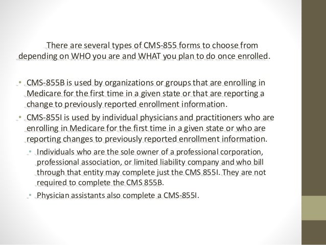 Medicare Enrollment Forms 855 B. I want to make sure Medicare can give my personal health information to someone other than me (Authorization to. Clinics/group Practices and Certain other Suppliers.