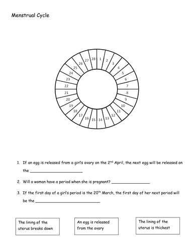 Download Worksheet. See in a Lesson Plan. Students complete worksheets about the reproductive system to define terms, explain the menstrual cycle, and more. Normal menstrual cycle represents a coordinated serial event, repeated month by month, at regular intervals, in which the hypothalamus participates along with the secretion of GnRH, the pituitary gland secreting follicle stimulating hormone and luteinizing hormone (LH), and the ovary which responds to.