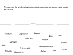 Metals And Acids Word Equations Worksheet. The more reactive metals react with acids to form a salt and water. Word equation: Metal oxide + acid metal salt + water.