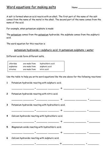 But unlike the reaction between acids and bases, we do not get water. Give pupils the names of other salts and ask them to suggest which acid and metal oxide would be Instruct pupils to write word equations for the reaction of metals with water. Download and print this enormous collection of one-step, two-step and multi-step equation word problems that include integers, fractions, and decimals.