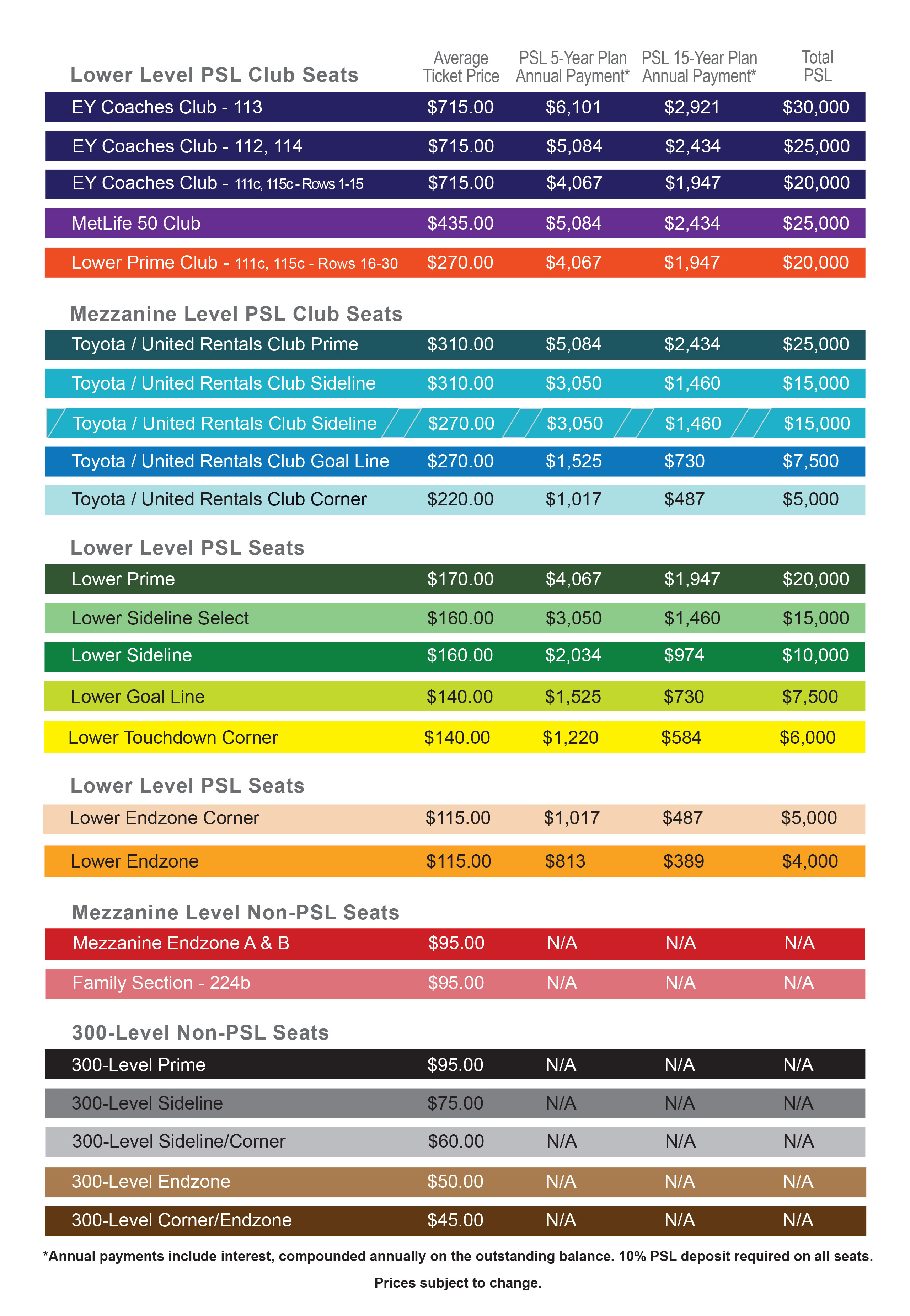 New York Jets | Pricing Chart