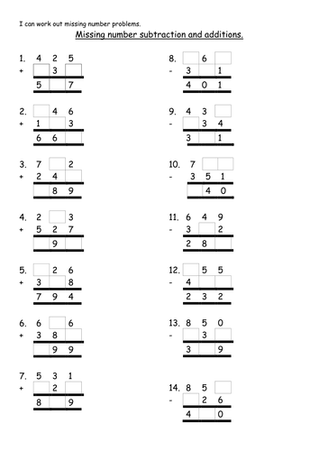 Missing number problems column addition and subtraction ...