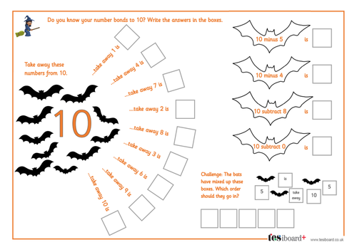 Subtraction from 10 - Spooky Maths Worksheet - Halloween ...